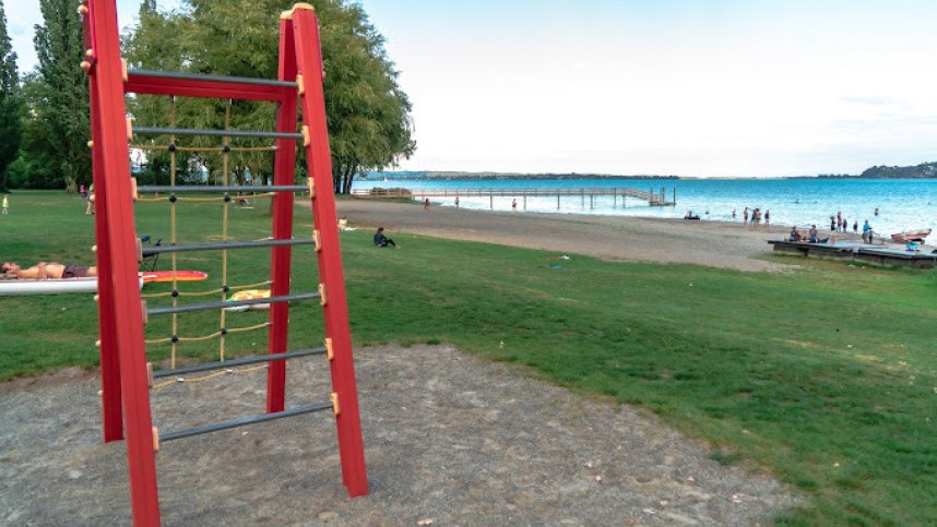 The heated toilet block has showers (charged), wash basins and wc’s. Accessible facilities. Baby room. Laundry with washing machine and dryer. Dish washing area. Motorhome service point. Chemical toilet point. Restaurant serving German and Turkish cuisine. Dogs and BBQ’s allowed. Communal BBQ area. Beach showers. Defibrillator. Shop. Bread to order. Bar. Pizzeria. Take away. Freezer for ice packs. Bike and kayak hire. Lake swimming. Jetty. Children’s play area. Mini-golf course. Table tennis. Multi-sport pitch. Volleyball. Wi-Fi.