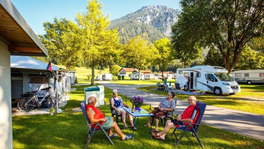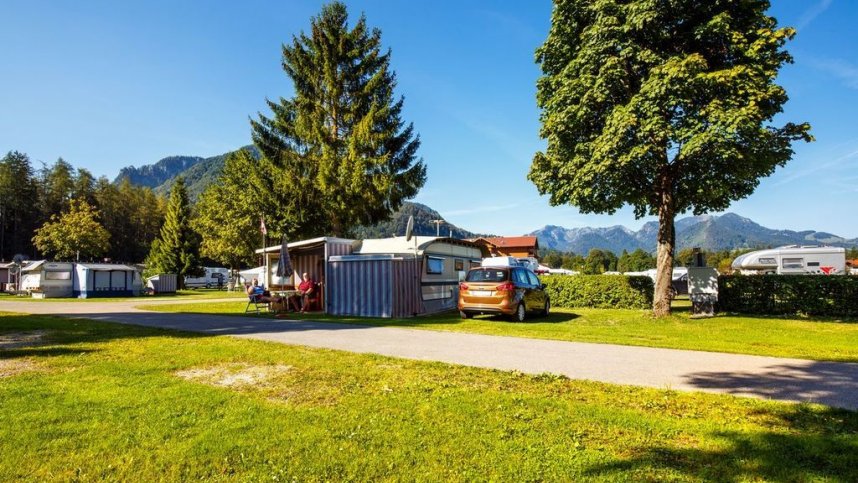 This established family run site is in attractive Alpine valley high (almost 700 m) in the Bavarian Alps and close to a ski lift. It has level grass and gravel pitches with open views towards Rauschberg to the south which reaches a height of 1,645 m. It provides another excellent location all year for walking, cycling and in the winter for skateboarding and skiing. All 63 touring pitches (123 in total) have 10A electricity. Although no English is spoken, the Bichler family ensure the site is well managed and maintained. If the reception is closed (open mornings only in low season) a sign will tell you where to camp and you will find those electricity boxes open.