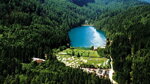 High above the village of Tristach and 5 km. from Lienz, this is a perfect location for a peaceful and relaxing holiday or as a base for exploring the Dolomite region. Situated amongst giant conifers and surrounded by snow-capped mountains, the site offers everyone a view of the volcanic Lake Tristachsee.