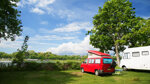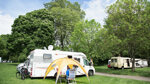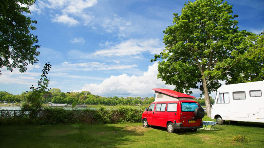 The ancient city of Cologne offers much for the visitor. This wooded park is pleasantly situated along the river bank, with wide grass areas on either side of narrow tarmac access roads with low wire mesh fencing separating it from the public park and riverside walks. There are 140 unmarked, level or slightly undulating touring pitches, all with 16A electricity and there is shade for some from various mature trees. Tents have their own large area. Because of its position close to the autobahn bridge over the Rhine, there is road and river noise.