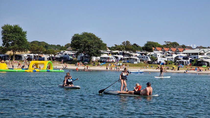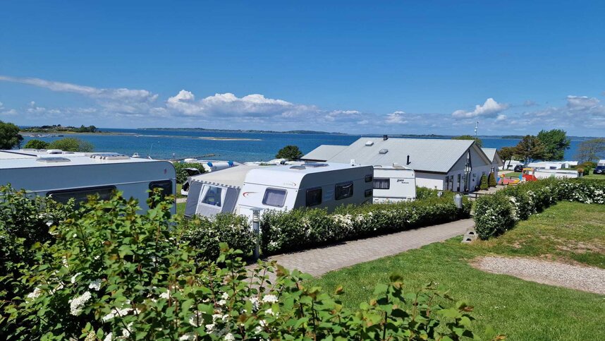 Bøjden is located in one of the most beautiful corners of southwest Fyn (Funen in English), known as the Garden of Denmark, and may well be considered one of the most complete campsites in the country. With just a hedge separating it from the beach, it is suitable for an entire holiday, while remaining a very good centre for excursions. Arranged in rows on mainly level, grassy terraces and divided into groups by hedges and some trees, many pitches have sea views as the site slopes gently down from the road. The 295 pitches (210 for touring) all have electricity (10A) and include 65 new, fully serviced pitches (water, drainage and TV aerial point).
