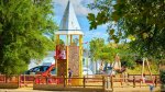 Six traditional toilet blocks with preset showers and washbasins in cabins. Laundry facilities. Baby bath in one block. Accessible Facilities in three blocks. Bar (all season). Shop, restaurant and takeaway (July/Aug). Heated indoor pool with slides (supervised in July/Aug). Outdoor pool (July/Aug). Play area. Bicycle hire (July/Aug). WiFi in bar area(charged).