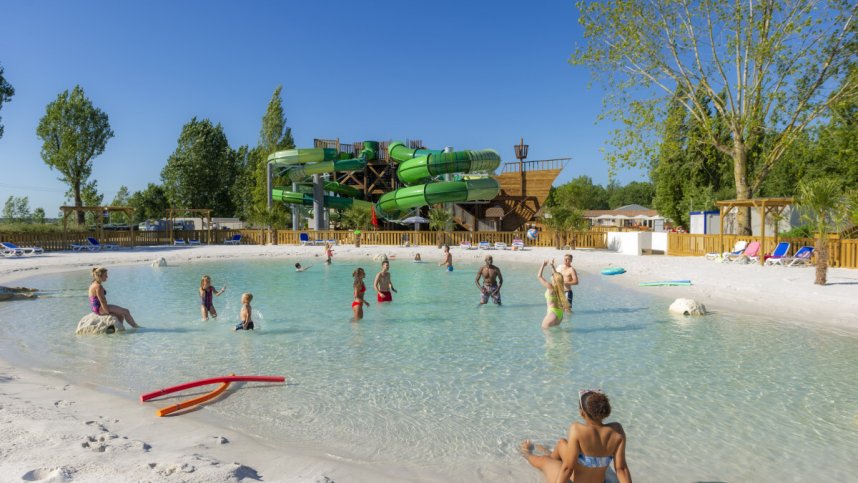 Les Almadies is now part of the Tohapi Group who have built an impressive covered pool complex (open all year) and increased the number of mobile homes available to rent. Of the 520 pitches, all on level ground, 132 are available for touring, most in blocks, numbered but otherwise unmarked; all but two have electricity. A shop, restaurant and takeaway and the outdoor pool are open in high season only. A shuttle bus provides a link to the beach at La Tranche in high season, otherwise it is a drive of 4 or 5 km. The town has a good range of shops, bars and restaurants, with a large supermarket on the outskirts as you approach.