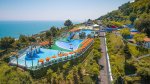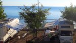 An extremely well run site, Riva Verde offers everything a camper could require. The site stretches 1.5 km. beside the Adriatic with an escalator to bring clients back up the steep slope from the beach. A shuttle bus runs along the coast from the site entrance. There are 450 small pitches with 420 for touring (electricity 6-10A), shaded by mature trees and with views over the Adriatic. Private toilet and bathroom facilities are available at a supplement. A large aqua park provides slides, swimming pools and children’s pools, all surrounded by a sunbathing area. All the pitches are terraced above the road, motorway and railway and some noise must be expected at all times. Entrance to the site is via a tunnel, and the access road is steep.