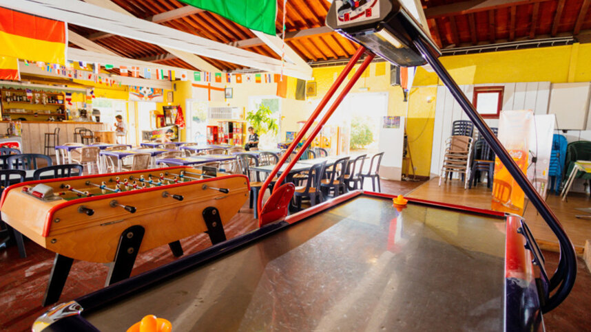 One toilet block provides modern facilities including a baby bath, laundry and accessible facilities. Shop for basics. Bar/snack-bar with terrace and entertainment in season. Takeaway. Play area on grass. Swimming pool, good sunbathing area and children’s pool. Bicycle hire. Gym. Games room. Activities for children and entertainment in high season. Gas barbecues only. Max. 1 dog. WiFi throughout (charged).