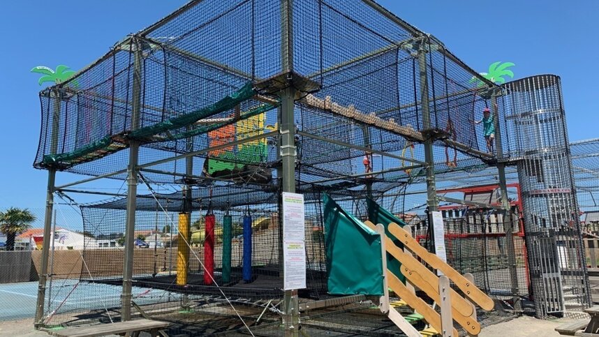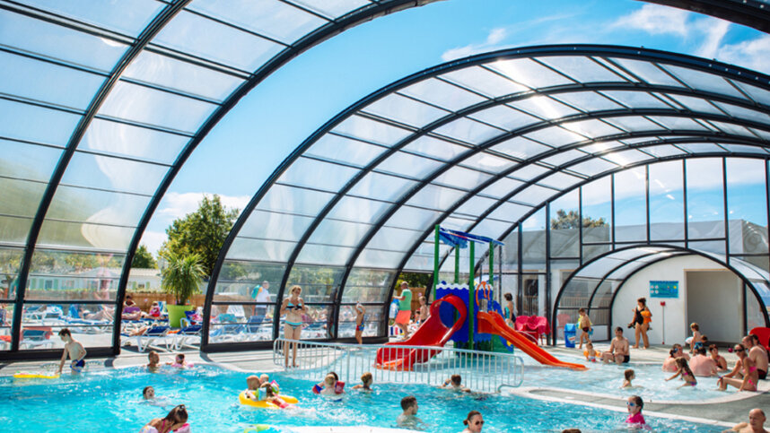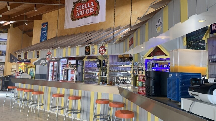 Four recently refurbished unisex toilet blocks include washbasins all in cabins and showers. Accessible Facilities, Laundry facilities. Shop (1/6-10/9). Bar with large screen TV, snack bar and takeaway (1/6-10/9, limited hours outside high season). Swimming pool (heated 15/5-10/9) with slides, waterfalls and children’s pool. Fitness suite. Walled (three sides) boat-themed play area. Games room. Tennis. Bicycle hire. Pétanque. Multisports pitch. Electric barbecues are not allowed. Max. 1 dog. Internet and WiFi throughout (charged).