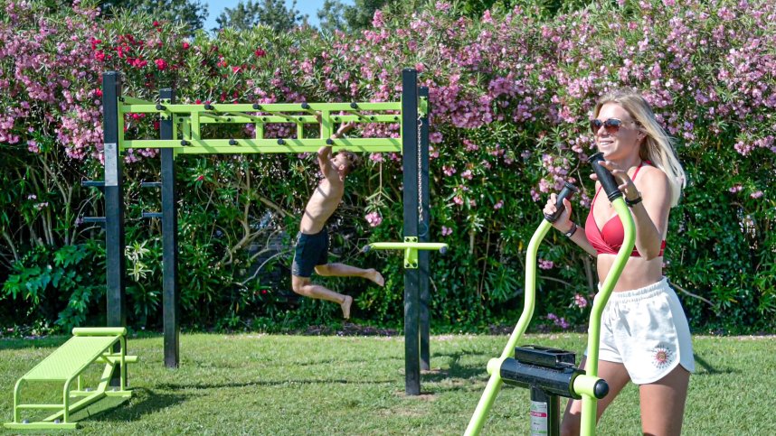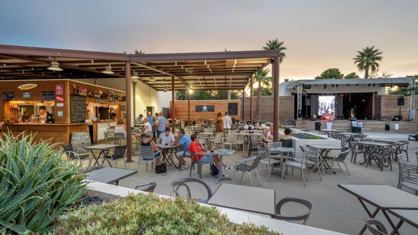 Fully equipped toilet blocks, one of them is heated. Washing machines. Motorhome services. Shop. Bakery. Bar. Restaurant and takeaway. Bike Rental. Free shuttle bus from the campsite to the beach. Kids club and teenagers club (high season). Heated swimming pool with waterslides. Play area. Organised activities for all ages (high season). Foam parties. Evening entertainment.