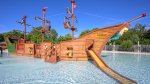 Domaine le Pommier is an extremely spacious, first class site of ten hectares in 32 hectares of wooded grounds centred around a spectacular pirate themed water park. The site is steeply terraced and has wonderful views over the Ardèche mountains and beyond. Of the 611 pitches, 137 are for touring units, the rest used for a variety of mobile homes and chalets to rent. They are on flat, sandy grass, of a good size and well spaced. Separated by trees and hedges, some have less shade. All have shade and access to electricity and water and all facilities are of a very high standard. The site is not recommended for very large units.