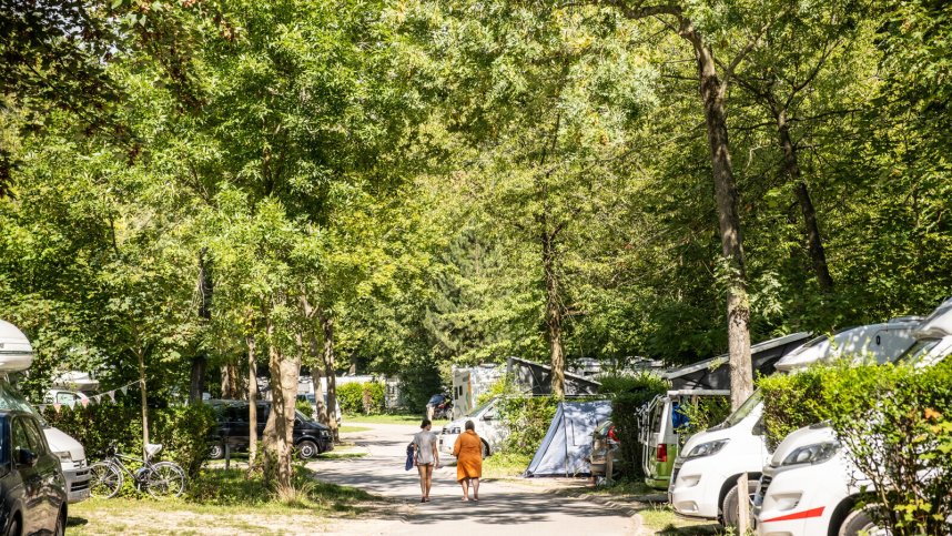 At the entrance is a modern reception building (open 07.00-22.00) with a code operated barrier system. One can reach the Champs Elysees in 10-15 minutes by car or, from April to October, a shuttle bus runs every half hour from the site to the Metro station. Excursions are organised in July and August and there are ticket sales for Disneyland, Asterix Parc, etc. Note: you are in a major city environment – take care of valuables.