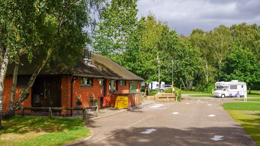 The two brick built toilet blocks provide private washing cubicles, showers and WCs, dishwashing sinks, and Accessible facilities. Laundry. Motorhome service point. Four service points, including chemical toilet facility, are well located around the site. Information room. Dog and bike washing points and a bike security lock-up is also available. Wi-Fi fair, charged. Dog walk adjacent. BBQ's allowed. Defibrillator. Gas sales. TV reception booster system. Security barrier. Train Station 5 miles. Sainsburys 5 miles. Twin axle caravans accepted. Late-night arrivals area. Earliest time of arrival 1:00 pm. Maximum unit length 10 metres