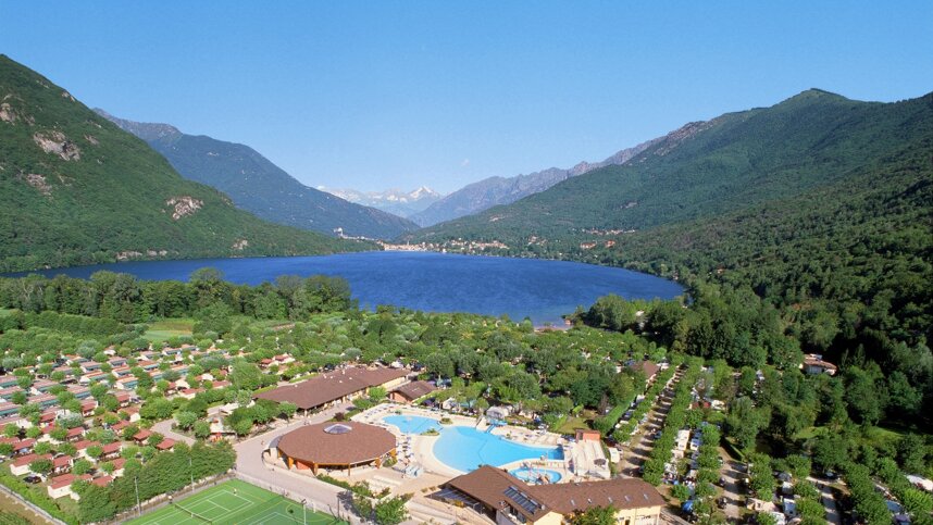 Camping Continental Lido is a large, bustling site situated on the shore of the charming little Lake Mergozzo, about one kilometre from the better known Lake Maggiore. The average size touring pitches are back to back in rows on grass and although a little close together, the rest of the site has a more open feel. All have 6A electricity, TV connections, water, drainage and there is some shade. There are also 287 mobile homes and 14 apartments available to rent. There is an impressive pool complex and a small sandy beach slopes gently into the lake where swimming and watersports can also be enjoyed (no powered craft may be used).
