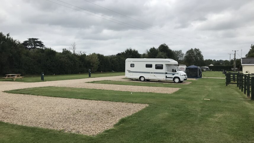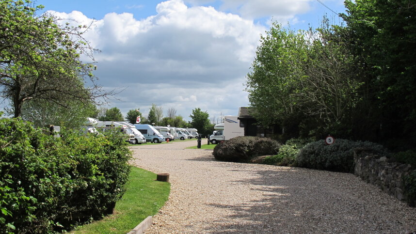 This neat little park is on level ground and located close to the M5 motorway. There are 49 pitches with 10A electricity, of which 25 are on gravel hardstanding. Most pitches are accessed from a gravel road (one-way system) with plenty of fresh water taps, site lighting and some picnic tables. A separate area for tents is close to the toilet block. A pleasant and quiet site, but there is some background motorway noise.