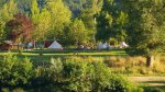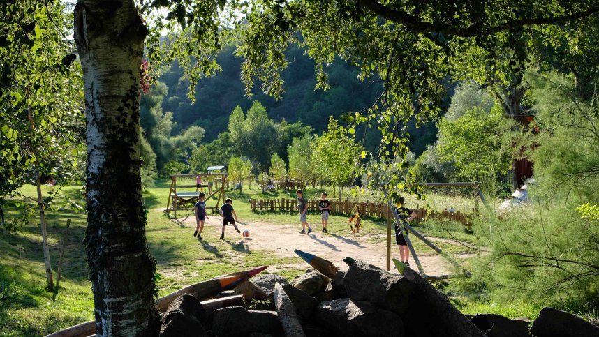 CosyCamp is a superbly designed and equipped, car-free site in a tranquil, four-acre wild park close to Le Puy en Velay. It enjoys views towards the high hills and ruins of the Château d’Artias. The 86 pitches (65 for touring) are very large (100-300 sq.m) and have 16A electricity connections. There are nine motorhome pitches (100 sq.m) in a special meadow. The whole family will enjoy the heated outdoor pool and the indoor pool with water jets and counter-current feature. The site also offers an impressive range of rental accommodation: beautifully decorated Safari lodges, tree houses, authentic wood and canvas tents, a Romany-style caravan and a luxury cottage.