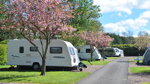 This attractively laid out, quality park has individual pitches and good facilities and although outnumbered by caravan holiday homes, the touring section is an important subsidiary. Its facilities are both well designed and comprehensive. There are 58 level touring pitches on hardstandings with grass area for awnings (only ‘breathable’ type groundsheets may be used) and hardstanding area for cars on most. All caravan pitches are large (130 sq.m) and are equipped with 16A electricity, water and drainage. There are 15 larger patio pitches with summer house, barbecue patio, picnic table and chairs, partially screened. Tents are taken on a grassy meadow at one end, also with electricity available.