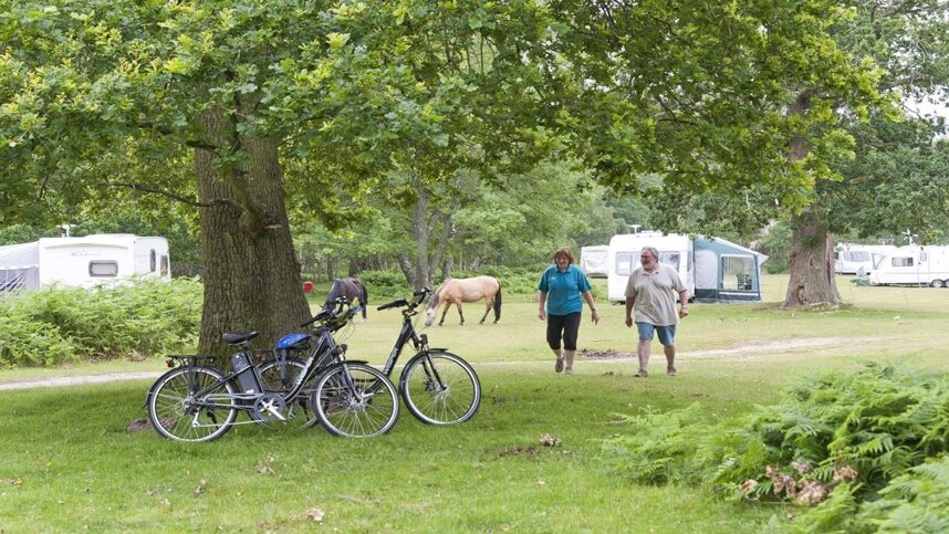 Denny Wood Camping in the Forest site sits in a perfectly secluded spot of the New Forest, England's largest ancient woodland. A haven for nature lovers and a peaceful retreat for stress-ridden holidaymakers. Made up of open grass, pitches under the canopy and tree-lined edges, Denny Wood gives the impression of being cut off from the outside world. Pitches are separated by the natural features of the land, such as ferns, oaks and fallen trees, and are frequented by roaming ponies and donkeys of the New Forest. Denny Wood site provides direct access to many of the waymarked routes amongst the forest. Please note: Dogs are not allowed on this site. The site has 170 grass or hardstanding pitches, some seasonal. The site does not have electric hook-up points or toilet block.
