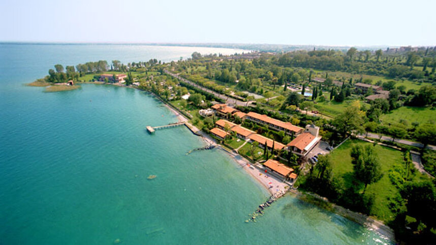 From A4 (Milan-Venice) take exit for Desenzano del Garda towards Lake Garda. In Desenzano, 2 km. after roundabout, go under railway bridge and follow signs for centre. At second roundabout turn left towards the lake then left at roundabout on lake. Site is 600 m.