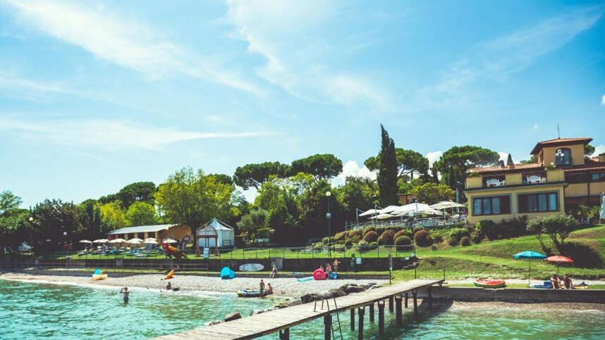 Set in five hectares of parkland in one of the most beautiful areas of Lake Garda, Desenzano Lake Village 100 metres from a beach, directly on the lakeside with wonderful views across the lake. This peaceful resort has 78 studios and apartments of various sizes to rent, all with a balcony or patio, and set next to the swimming pool, lake or playground areas. There are also 85 pitches of which 38 are available to touring units, all with 6A electricity. Guests have direct access to the beach and lakeside from the site. This is an ideal place for enjoying the lake and it is also conveniently situated for visiting places of historical, artistic and cultural interest.