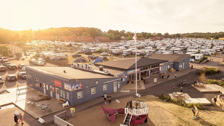 Destination Apelviken is an all-year site in the Hallands Län region on the northern side of a long bay, right by the beach, and still only 1.5 km south of the town centre. The site has 500 grass pitches of which 308 are for touring units, have 10-amp hook-up points, and have 82 rental accommodations available to hire.