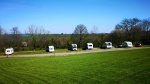 The toilet block has showers, wash basins and WC’s. Chemical toilet point. Dish washing area. Freezer. Laundry with washing machine and tumble dryer. Small kitchen area with kettle, toaster and microwave. Barn with full sized snooker table, pool table, table tennis, darts, lounge area with a large TV and sofa. Outdoor swimming pool, Dogs allowed.