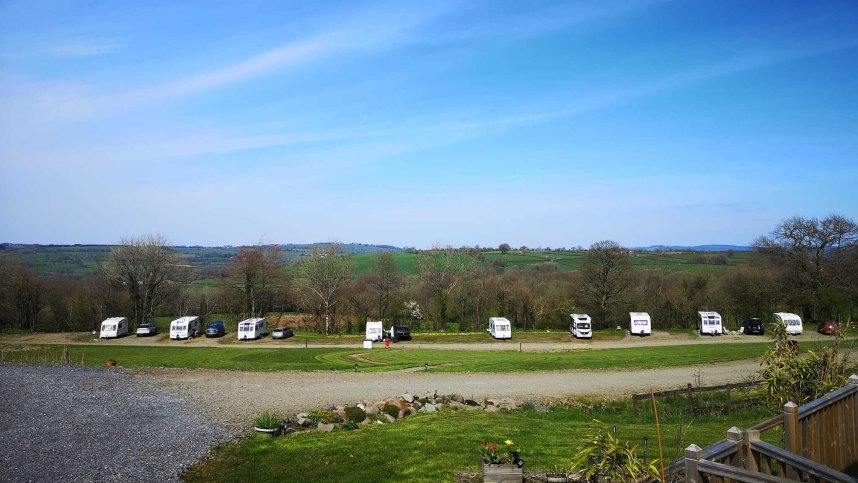 From Carmarthen on the A40 join the A485 towards Lampeter after passing Pontarsis and Llanllwni continue to a large garage on the right ‘Celtic Garage’ and turn left. The site is the off this road. The site has its own access road with a large wooden gate at the entrance.