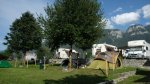 Dolomiti di Brenta is open for separate winter and summer seasons. It is situated at an altitude of 800 m. in an attractive, open valley surrounded by the rugged Dolomite Mountains and is only 100 m. from the River Noce. It is an ideal base to explore this fantastic region. There are 190 level and grassy pitches, all with 4/6A electricity and some fully serviced. Young trees offer a little shade. The pitches range in size from small (25 sq.m), suitable for small tents, to large (120 sq.m), suitable for medium sized outfits. Cars must be parked away from pitches.
