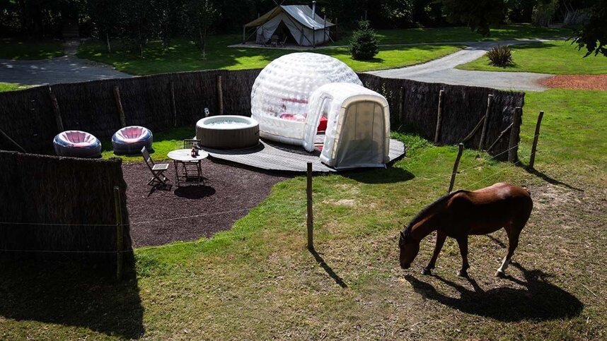 Domaine Arvor, located 3 km. from the delightful medieval town of Dinan offers an interesting and varied selection of accommodation available to rent. This includes fully furnished Mongolian yurts, Indian tepees (with double beds) and two types of Moroccan-style tents. They also offer Romany style caravans, luxury tree houses and well appointed apartments. Please note that there are no touring pitches here. The focus of this site is the excellent outdoor wellness centre, which also offers a sauna, a jacuzzi and a Turkish bath. Massages are on offer, along with a relaxation lounge and a well stocked library.