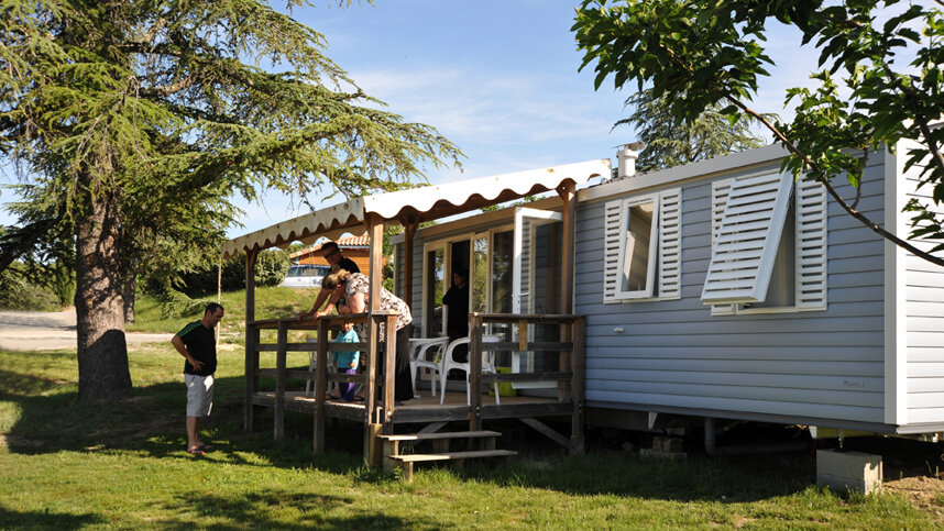 If you really want to get away from it all this large (43 ha), quiet site tucked away in the hills above Vallon Pont d’Arc could not be a better choice. Situated two kilometres north of the village of Lagorce, it has 55 pitches, 35 of which are for touring (19 mobile homes/chalets for hire), the majority fully serviced (10-16A, Europlug). Arranged over terraces, all are flat, grassy and vary in size (150-300 sq m). They are split roughly into three areas - chalets, pitches close to the bar and some newer pitches a little further away on lower terraces. Most of these enjoy views to the hills beyond as do the infinity pool and sunbathing area.