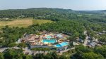 Domaine de Chaussy is a holiday complex centred around a large water park and is set in 15 hectares of forest. It has a 40 bedroom hotel, 17 modern cottages, tour operator tents and mobile homes, with just 20 pitches for touring. These pitches are on rough grass with small hedges and mature oak trees giving shade and with 10A electricity. In high season the complex provides evening entertainment which can continue into the early hours and is therefore thoughtfully located in an underground disco area. There are comprehensive activity clubs for toddlers, teens and adults and activities such as aqua gym, tennis, horse riding, walks in the hills, quad biking and canoe trails are available daily in high season.