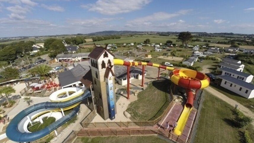 This large, well maintained site, part of the FranceLoc group, has many mature trees providing shade and colourful landscaping with shrubs and flowers. Marked by faint lines on the ground, the grassy pitches are level and well kept. Arranged in enclosures of five to six units, each group is surrounded by trees. The excellent pool complex provides indoor and outdoor pools, sunbathing terraces, paddling pools and a slide. Nearby are a comfortable bar and separate restaurant and for youngsters on a rainy day, a large, well equipped games room. The beach of Douarnenez Bay is 1 km. and is wide, safe and popular with sail-boarders.