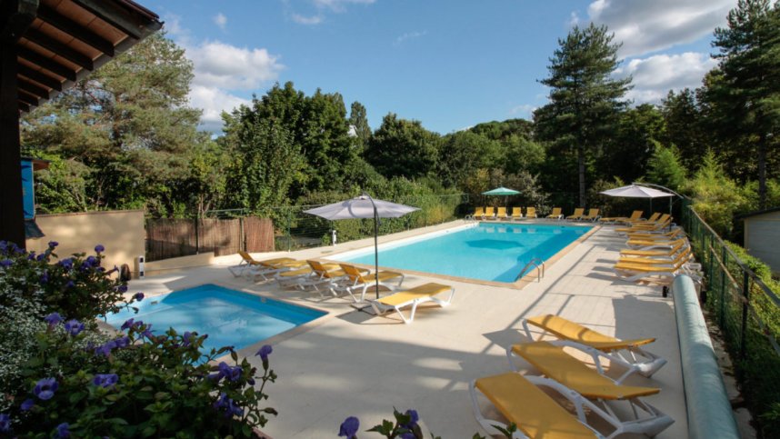 On the edge of an attractive Bastide (a medieval fortified town) in the heart of the Dordogne, the Domaine de la Colombière is a holiday park offering bungalows and mobile homes in a shady setting, and consists of beautifully wooded terraces overlooking a small valley. There are no touring pitches. Access to accommodation is along steep footpaths, as all vehicles are left at the entrance to the site. A small heated swimming pool with a sun terrace is open from mid May. The village is just a short walk from the site and along its quaint streets are a variety of shops, bars and restaurants.