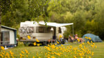 At this secluded and attractive naturist campsite, you will receive a warm welcome from the enthusiastic owners, Floor and Tim. The site is spacious and well equipped with good sized, level, grassy touring pitches, some shaded and some open. Many are arranged in groups around three sides of a rectangle, between hedges. Electricity (4-10A) is supplied to all pitches, four of which are fully serviced. There are plenty of water points.