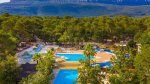 This is a family oriented site in the Provençal countryside, very much geared for family holidays with children. Some 30 minutes by car from the coast at Cassis, the site has a very large and well kept pool area and a stage for entertainment. There are 250 good sized pitches available, 60 for touring units and 190 mobile homes to rent. On mainly level, rather stony ground, with variable shade, all have 10A electricity. The attractive pool complex with three pools, a slide, jacuzzi and solarium, is surrounded by ample paved sunbathing areas with some shade from the trees.