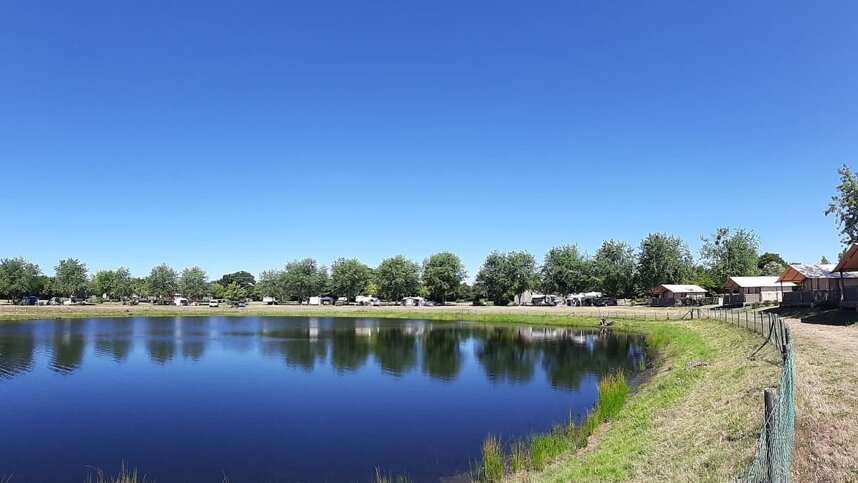 This campsite is located within the leisure centre of Houssay, close to the River Sarthe. Set in 40 hectares, it is also the closest campsite to the 24-hour race circuit at Le Mans, some 6 km. away. There are 86 pitches arranged in a horseshoe shape around a lake. Pitches are of a good size and all have electricity (10A). This is a green and open site with varying degrees of shade.