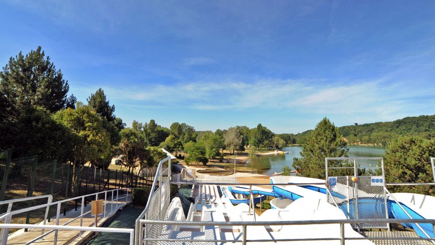 Two toilet blocks are on the campsite, one rather dated. They provide all necessary accessible facilities. Motorhome services. Bar and midday snacks (July/Aug). Games room with TV near entrance. Fishing, boating (no motors) on lake, canoes and pedaloes for hire (July/Aug and w/ends). Separate lake swimming area (supervised high season) with beach, paddling pool and large toboggan. Tennis. Some organised activities in high season. Charcoal barbecues are not permitted; electric barbecues for hire. WiFi at reception.
