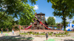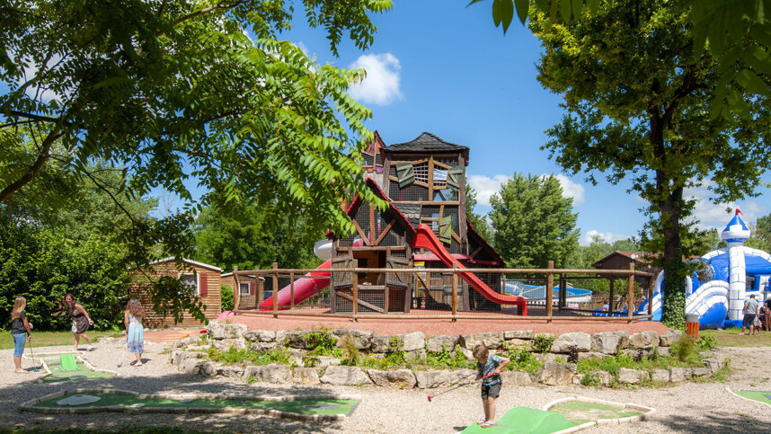 One basic sanitary block with four toilets and two showers. Maintenance appeared variable at the time of our visit. One room with accessible facilities with shower, basin and WC. Dishwashing in sanitary block. Launderette. Restaurant and snack bar. Outdoor swimming pool and indoor pool with paddling pool, small slide, sauna and steam room (April-Oct, no Bermuda shorts). Playground and bouncy castle. Pétanque. Tennis courts. Basketball and volleyball. Badminton. Mobile homes, cottages and tree houses to rent. Children’s club (5-11 yrs, July/Aug). WiFi (free in reception).