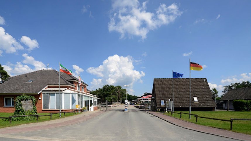 Leave A30/E30 autobahn at exit 10 and drive north towards Hopsten to stop sign. Turn left towards Rheine and after 100 m. turn right. Site is signed.