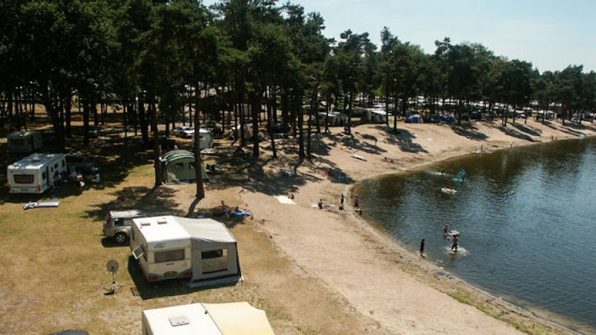 This campsite with 570 pitches (150 for tourers) is centred around an artificial lake which has a gently sloping sandy beach and is surrounded by a mass of tall pine trees. Under the pine trees there is room for 120 touring pitches, all with electricity (16A, long leads required) and TV connections, 27 also with water, cable and waste water. In this area campers can park at will, on open, sandy, grass-covered ground. From most touring pitches there are good views over the lake, and campers will enjoy the welcoming bar/restaurant with its covered terrace.