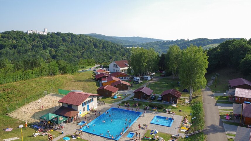 This family site in Bojkovice, close to the Slovak border and with views across the valley to the white castle Novy Svetlo, is attractive and well managed. It is on hilly ground with tarmac access roads connecting the 40 pitches. These are all for touring units on grassy fields taking six or eight units. Mostly on terraces in the shade of mature birch trees, all have 6A electricity. A footpath connects the three toilet blocks which offer a more than adequate provision. It also leads to the bar/restaurant and the centrally located outdoor pool. There is no entertainment programme, but we were told that children and teenagers enjoy their stay here. At the reception you may borrow a map with extensive tourist information about the local area.