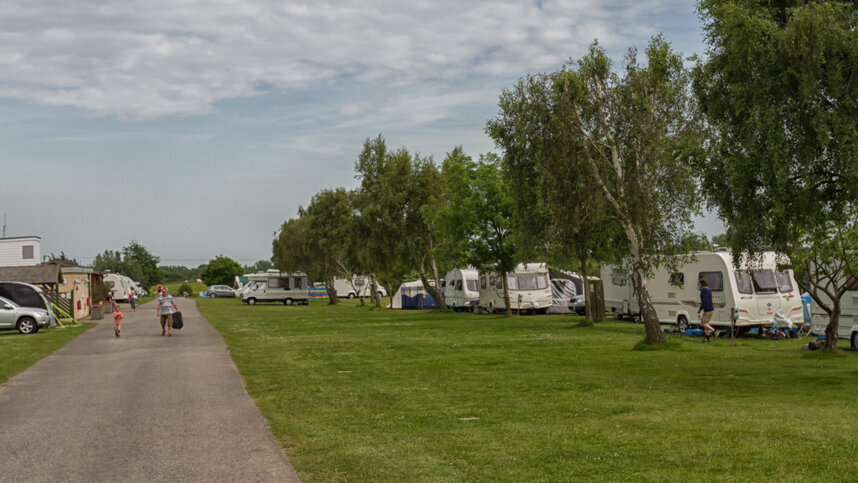 Part of a working, family-run farm, this is a simple, peaceful park which is ideally located to enjoy the Sussex countryside and coast, just a short distance from Eastbourne. A single, rectangular meadow is split by a line of attractive silver birch trees and provides 66 large grass pitches, all but four with electricity connections. The farm and its rural landscape stretch towards the sea at Pevensey Bay. Beyond the camping field, there is a duck pond with grassy surrounds and picnic benches, pens with numerous small animals and pets and a pleasant walk to a fishing lake.