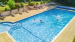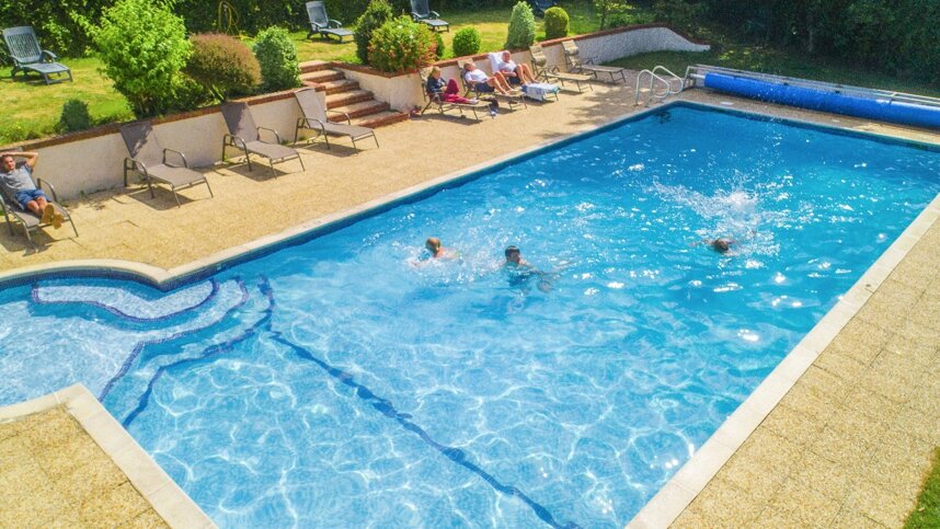Reception at the entrance includes a small shop, and coffee and drinks are served here. A covered outdoor area provides somewhere to relax (with free WiFi) and a centre for regular organised gatherings with pizza or barbecues. There is plenty of room to sit around the heated swimming pool, including a large grassy terrace with sun beds provided. A car would be useful here to reach the beaches, Saint Peter Port and other attractions, although there is a bus service each day (20 minutes walk). The German Military Underground Hospital is nearby.