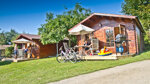 Good toilet facilities have controllable showers, some washbasins in private cabins with a shower, baby bath and changing unit. Dishwashing facilities under cover and a tap for free hot water. Laundry room with free irons, boards and hairdryers. Heated swimming pool (13x6 m) with paddling pool (10:00-19:00). Well stocked shop with fresh produce, bread delivered daily, snacks and camping essentials. Off licence. TV and games rooms. Small play area and play field. Farm animals. Bicycle hire arranged. Torches useful. WiFi in reception (free).
