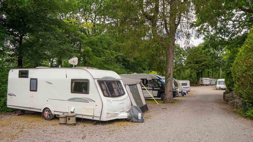 Open all year round, Fell End Caravan Park is surrounded by woodland and set in the heart of the countryside close to Arnside and Silverdale. There are 44 level, pitches for caravans and motorhomes; some allocated for seasonal use, arranged on hardstandings surrounded by mature trees and shrubs. Marked and numbered, all have 10A electricity and the possibility of Freeview TV hook-up. There are no tent pitches.