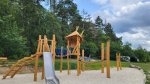 Modern and well maintained sanitary block with some washbasins in cabins and controllable showers (on payment). Washing machines and dryers. Small shop and snack bar. Lake swimming. Play area. Volleyball. Bowls area. Gas supplies. Limited entertainment (high season). WiFi over site (charged). Dogs are not accepted.