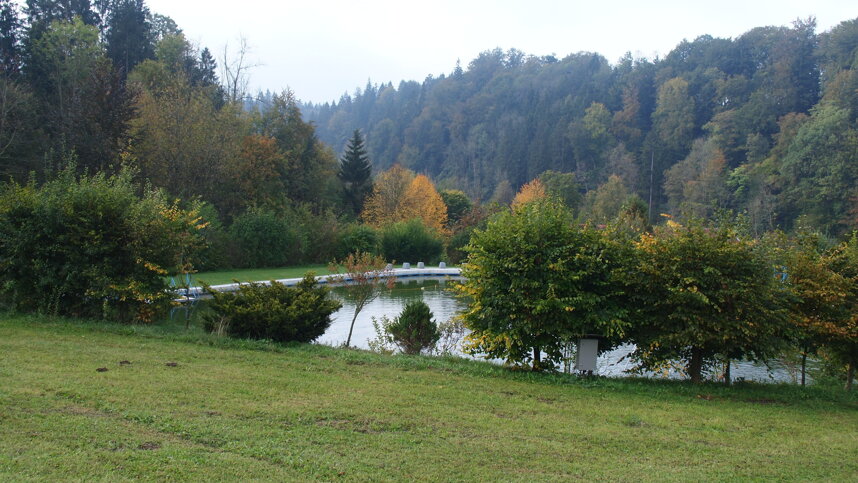 FKK Familiensportgemeinschaft Allgäu is in a quiet and attractive location backing onto woods, this 14 ha. naturist site has 110 grass pitches, all with 16A electricity. The top two rows are for members only, leaving the bottom tier for 40 touring pitches. The terraces lead down to the River Iller (swimming not permitted), beside which is a meadow and sports area. Also here is the Haldenmühle, now a guesthouse with terrace and comfortable traditional restaurant complete with ‘kacheloven’ (tiled stove). The attic of the building provides communal facilities for pre-booked youth groups. The old pond, beside the lower terrace, formally a reservoir for the Mill, is now used for swimming.