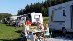 The town centre is a 20-minute walk through a housing estate, where a covered and elevated walkway crosses the main road and railway to the pedestrian shopping precinct with its floral arrangements and fountain. The site also has ten cabins to rent. Good mobile phone reception.