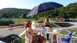 Kramfors lies just west of the E4, and travellers may pass by over the Höga Kusten bridge and miss this friendly little site. This area of Ådalen and the High Coast reaches as far as Örnsköldsvik. The attractive garden-like campsite has 32 pitches, 21 with electricity connections (10A), arranged on level grassy terraces, separated by shrubs and trees into bays of two to four units. The non-electric pitches are on an open terrace nearer to the reception. All pitches overlook the heated outdoor public swimming pool complex and an attractive minigolf course.