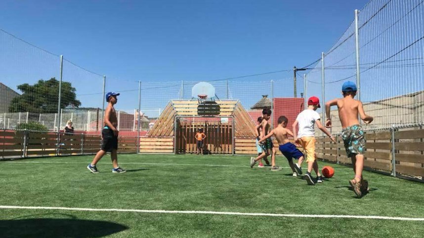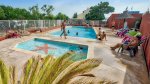The heated toilet block has showers, washbasins and wc’s. Accessible facility. Baby room. Chemical toilet point. Motorhome service point. Dish washing area. Laundry. Microwave. Small shop. Bread to order. Restaurant. Bar. Snack bar. Pizzeria. Takeaway. Communal barbecue area. Freezer for ice packs. Children's playground. Games room. Trampoline. Bouncy castle. Table tennis. Multi-sports field. Boules court. Entertainment, Kids club, Creative crafts, sports tournaments, Fitness equipment. Charging point for electric cars. Outdoor heated swimming pool and toddler pool. Dogs allowed. Wi-Fi charged. Defibrillator. TV room. Shop and public transport nearby.