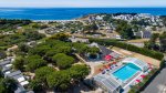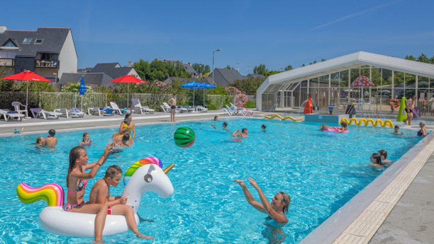 Le Bois d’Amour faces toward Belle Ile and lies just 150 m. from the attractive, sandy Goviro beach at the southern end of the Quiberon peninsula. There are 259 pitches here, of which only around 50 are for touring units, most with electricity. The pitches tend towards the smaller size, with mobile homes, lodges, glamping, and chalets occupying the other pitches. There is also a safari tent village. On-site amenities include a large indoor pool and a separate children’s pool. Quiberon is explored by bicycle, and these are available to rent on-site. In high season, a regular programme of activities and entertainment is organised, including activities for children. The site gets very busy in the high season, with pitch sizes often being reduced to increase capacity, so expect to be close to your neighbours.