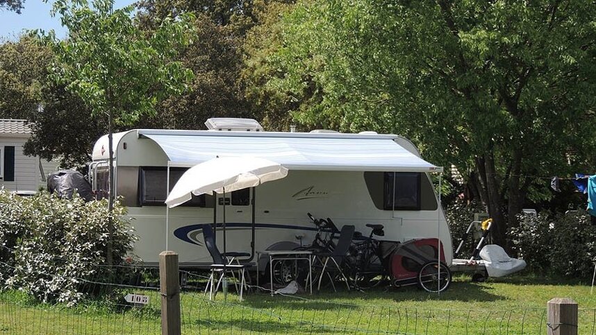 Large, central, fully equipped toilet block has facilities for babies and accessible facilities. Washing machines and dryer. Bar/snack bar (July/Aug). Takeaway. Outdoor swimming pool (all season). Aquagym. Spa and wellness centre. Sports field. Play area. Free WiFi in bar/terrace area. Mobile homes and chalets for rent.