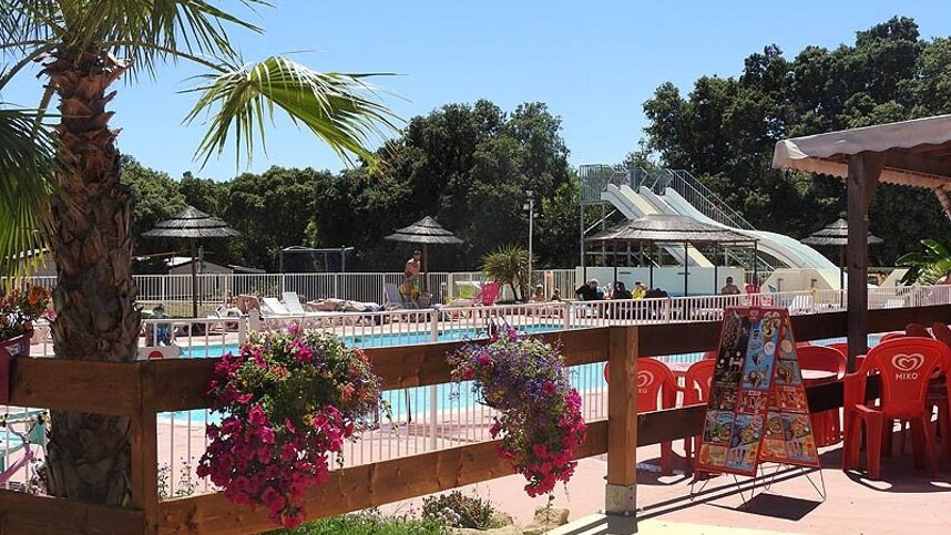 Large, central, fully equipped toilet block has facilities for babies and accessible facilities. Washing machines and dryer. Bar/snack bar (July/Aug). Takeaway. Outdoor swimming pool (all season). Aquagym. Spa and wellness centre. Sports field. Play area. Free WiFi in bar/terrace area. Mobile homes and chalets for rent.